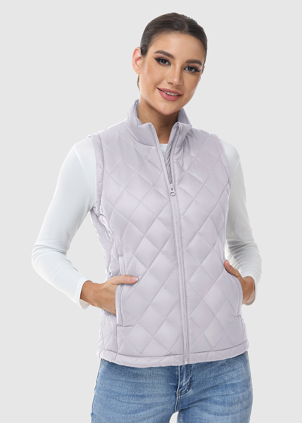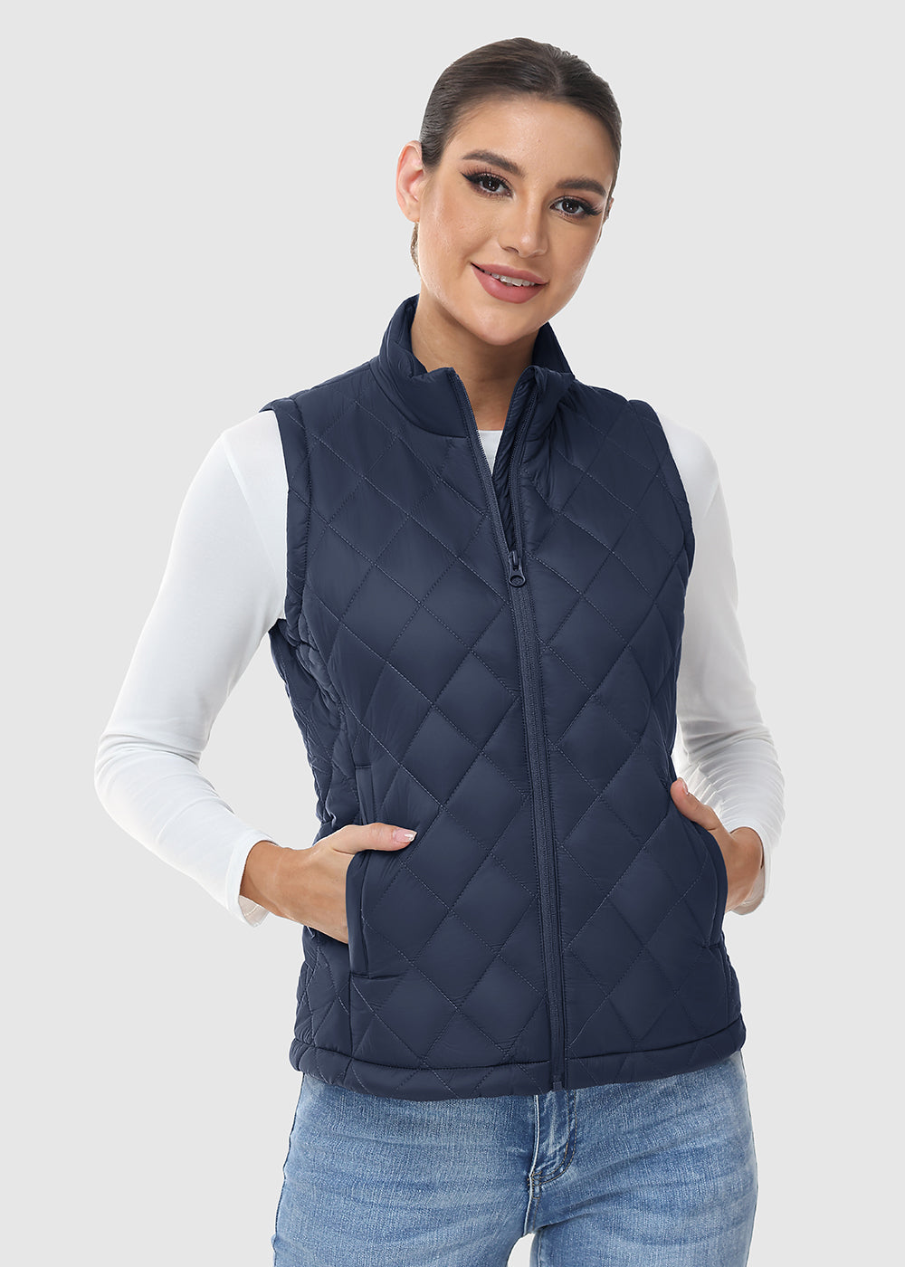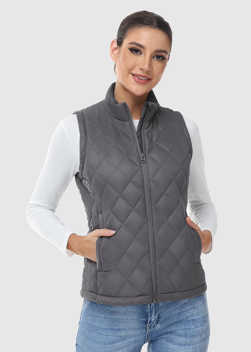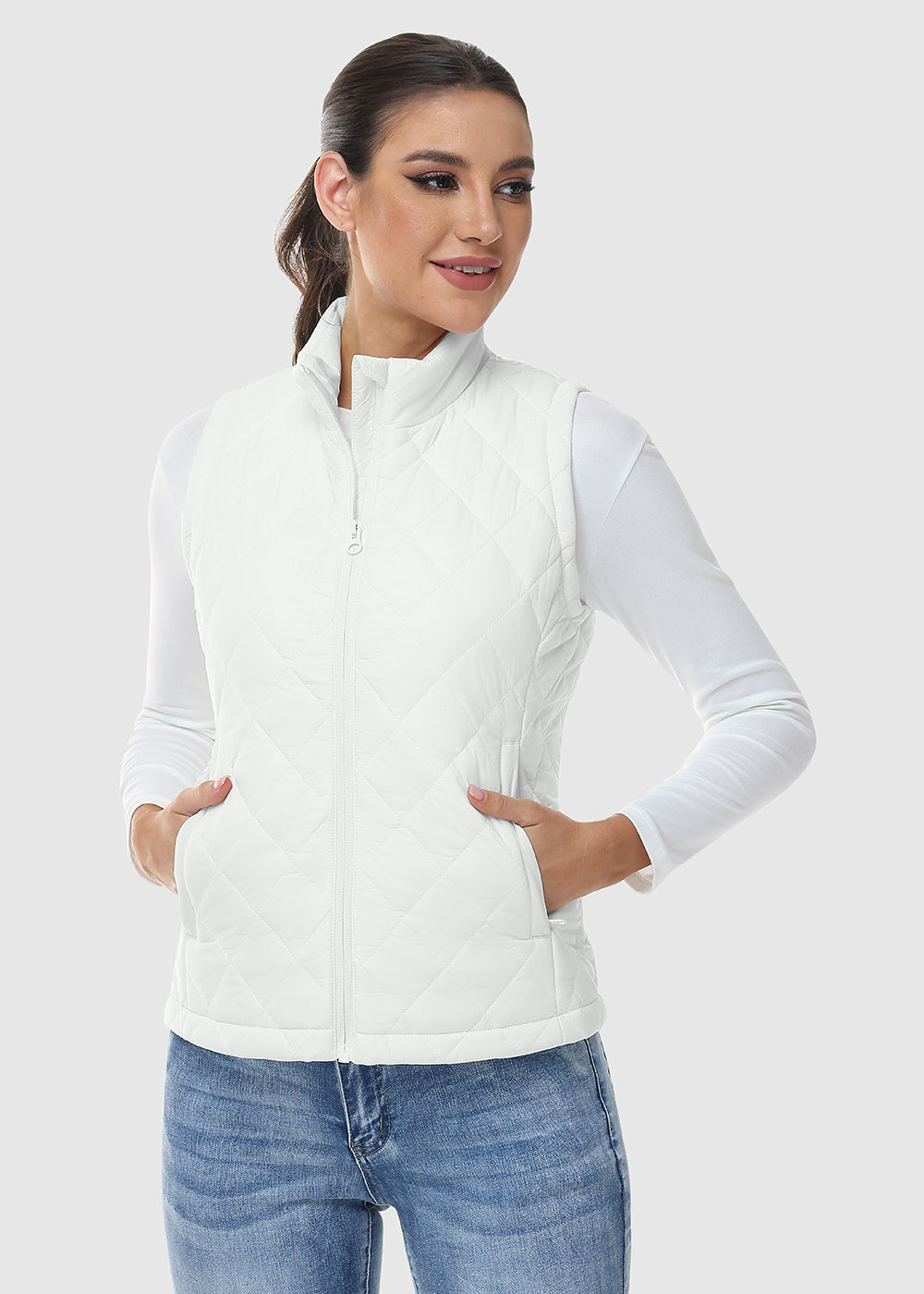 This versatile women's vest combines a 100% nylon shell with polyester-lined pockets, offering a water-repellent and soft layer perfect for transitional weather and casual styling.